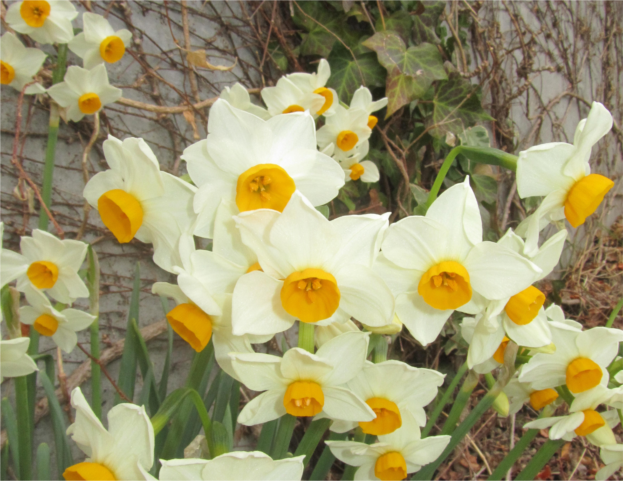 Если цветок, то он точно должен быть желтым или голубым. Пусть будет нарцисс. У меня есть как раз отличная фотография клумбы с нарциссами.